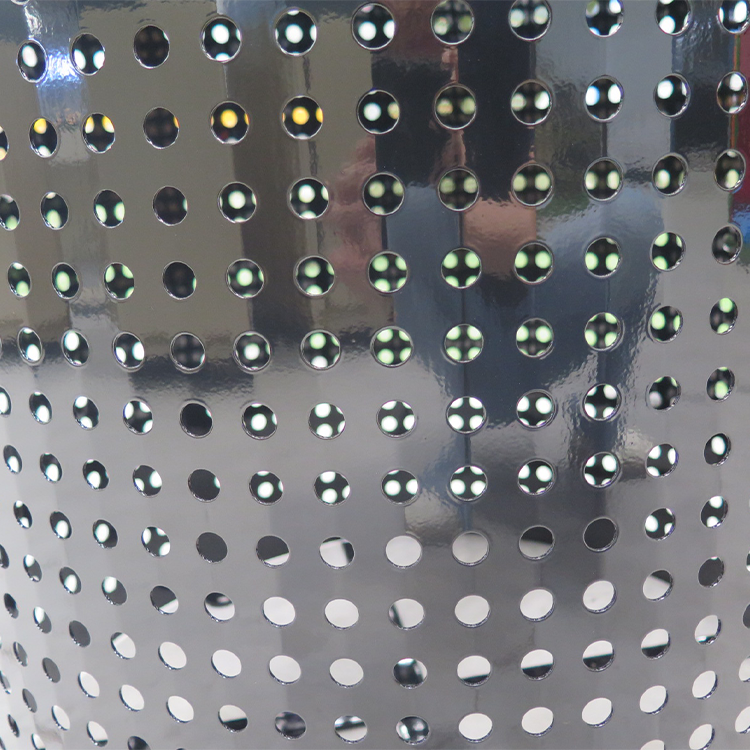 This outdoor waste bin features a cylindrical form in solid black, its body perforated with regular holes for a minimalist yet stylish aesthetic. The perforations enhance visual appeal while facilitating air circulation to minimise odours and allowing rainwater drainage to maintain internal dryness. The wide, flush-edged top opening ensures convenient waste disposal, balancing practicality with safety. Constructed from galvanised steel, the zinc coating forms a protective layer offering robust corrosion resistance for prolonged outdoor use in harsh conditions. The steel itself boasts high strength and excellent toughness, ensuring durability and resistance to deformation under external forces. Its smooth surface facilitates easy cleaning of dirt, minimising maintenance requirements. Overall, this bin combines practicality with aesthetic appeal, making it suitable for diverse settings.