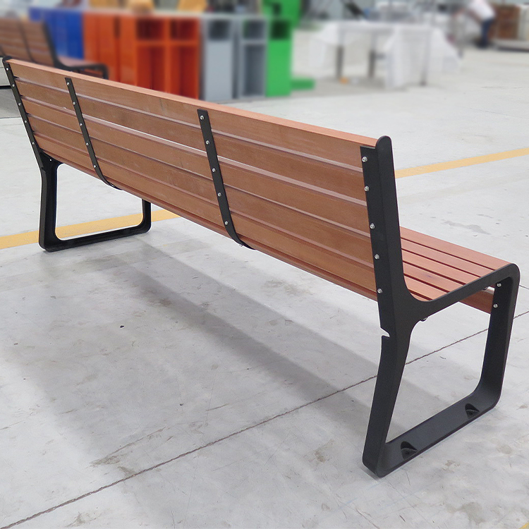 Modern Commercial Public Park Benches are made of high-quality aluminum Frame and wood, which has strong anti-rust and anti-corrosion properties. The park bench can be used outdoors in various weathers for a long time and in good condition. The main body of the bench consists of wooden slats forming the seat and backrest, and the bracket is made of black metal, the overall design is simple. The distance between the wooden slats is adequate for everyday use and helps to wick away standing water and humidity, keeping the bench cool and dry. The park bench is suitable for outdoor places such as parks, scenic spots, street,communities, schools, and commercial blocks.