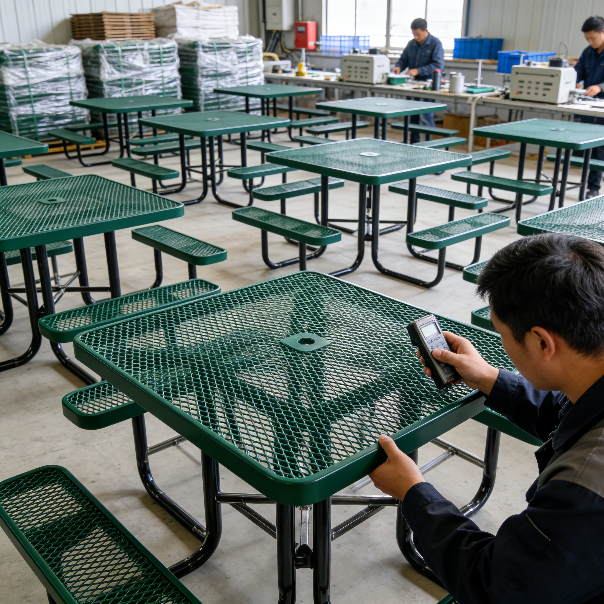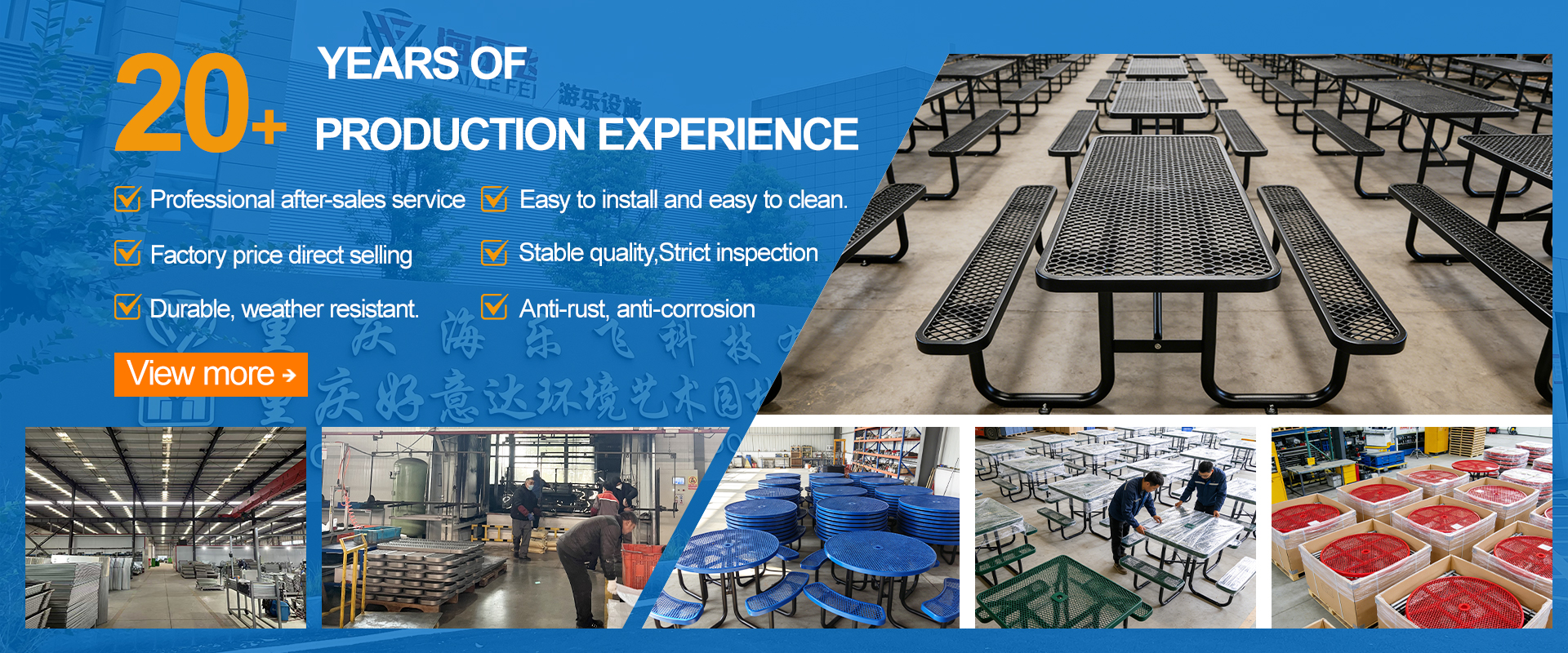 Haoyida\’s large-scale production capabilities enable customized combinations of colors, sizes, and shapes, making it a leading choice for public facility procurement in Europe and America. From factory workshops to urban parks, this versatile metal thermoplastic picnic table is redefining outdoor furniture procurement standards through “practical design + mass customization,” delivering more tailored solutions for global outdoor spaces.